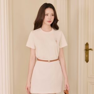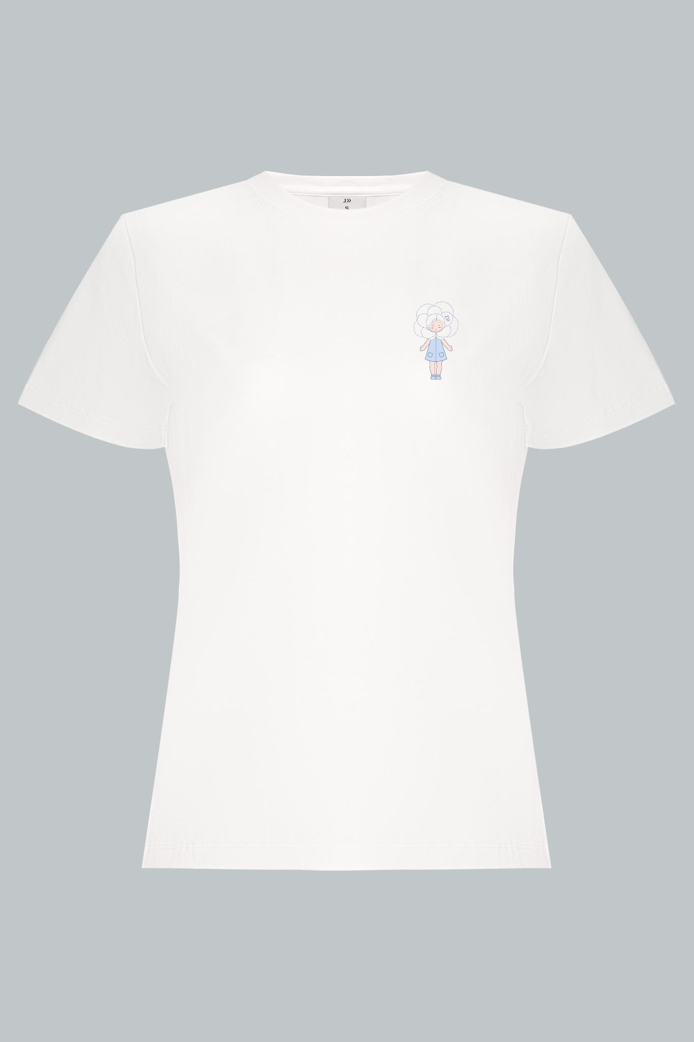 Trong khoảnh khắc ấy, nàng chọn một thiết kế mang lại cảm giác thoải mái nhưng vẫn đủ tinh tế. Chiếc áo phông gam màu sáng, điểm xuyết hình in mascot nhỏ nơi ngực như một chi tiết thú vị. Không quá nổi bật, nhưng đủ để tạo nên một dấu ấn riêng nhẹ nhàng.
